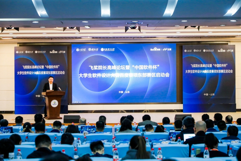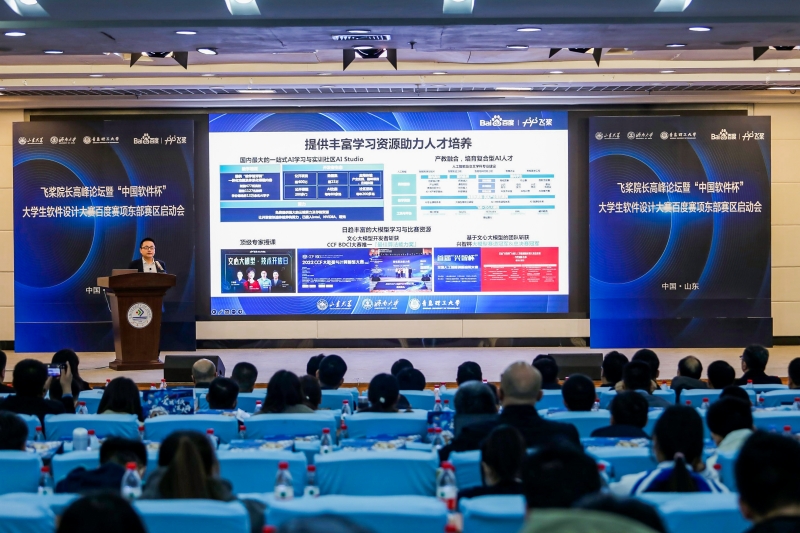 為了促進山東區域產業與高校更好融合,助力高校開展人工智能人才培養,加強區域內兄弟高校間交流探討,凝聚共識,打造產學研用標桿,貫徹產教融合模式創新與合作落實,3月25日,百度飛槳協同濟南大學、山東大學、青島理工大學在濟南大學第一學術報告廳舉辦飛槳院長高峰論壇暨“中國軟件杯”大學生軟件設計大賽百度賽項東部賽區啟動會。本次活動由濟南大學信息科學與工程學院承辦,山東大學、青島理工大學聯合舉辦,濟南市市中區副區長張源,濟南大學黨委副書記楊景波,青島理工大學黨委常委、副校長王在泉,山東大學團委書記姜炳剛,濟南大學團委和信息科學與工程學院相關負責人出席本次活動,山東大學、中國海洋大學、中國石油大學等17所高校的院系負責人,市中區以及百度公司、中國軟件杯組委會等相關負責人參加活動。活動由濟南大學信息科學與工程學院副院長荊山主持。