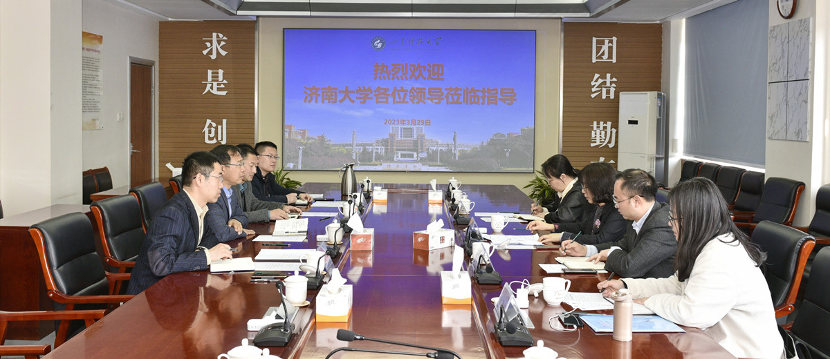 3月29日下午,王霞一行到山東科技大學調研學習,山東科技大學黨委副書記、校長曾慶田對來訪表示熱烈歡迎,回顧了兩校的歷史淵緣,并對學校近年的本科教學工作進行了介紹,希望兩校加強溝通合作,共同推動本科教學工作高質量發展。王霞對山東科技大學的熱情接待表示衷心感謝,高度評價了山東科技大學近年來在本科教學方面取得的成就,希望通過此次調研為濟南大學本科教學工作帶來新經驗、新思路、新啟發。隨后,雙方就專業建設、教學成果培育、招生宣傳等方面工作進行了深入交流。