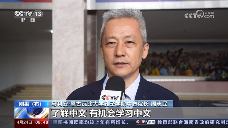 活動中,我校駐剛果(布)馬利安·恩古瓦比大學孔子學院中方院長周志民接受中國中央電視臺采訪并表示,希望以此為契機,有更多的本土學生和工作者了解中文、學習中文。