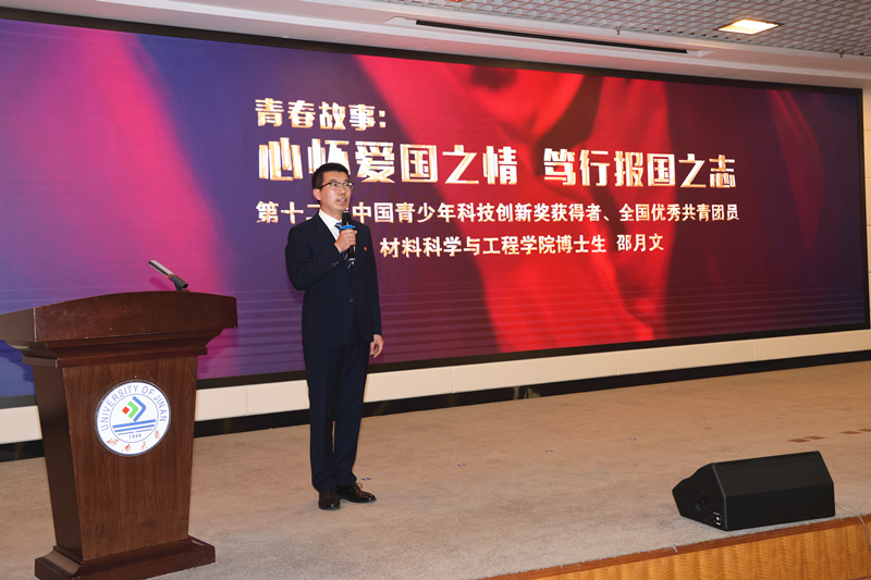 以信念鑄魂成長,以實干篤定前行。為更好地展現我校廣大青年積極進取、努力拼搏的精神風貌,用“身邊人身邊事”進一步激發全校青年見賢思齊的內生動力,大會邀請了第十二屆中國青少年科技創新獎獲得者、全國優秀共青團員、材料科學與工程學院博士研究生邵月文,濟南大學優秀青年工作者、山東省五四紅旗團委獲獎單位——信息科學與工程學院團委書記王豪,第六屆中國青年志愿服務項目大賽金獎團隊負責人、設計學院黨委副書記、副院長信蘇珊,第十三屆“挑戰杯”中國大學生創業計劃競賽金獎、第十七屆“挑戰杯”全國大學生課外學術科技作品競賽特等獎團隊代表,生物科學與技術學院本科生李子童分別講述了他們在學習工作、組織育人、志愿服務和科創比賽中書寫的青春故事,分享了個人和團隊在共青團工作平臺上收獲的成長與感動。