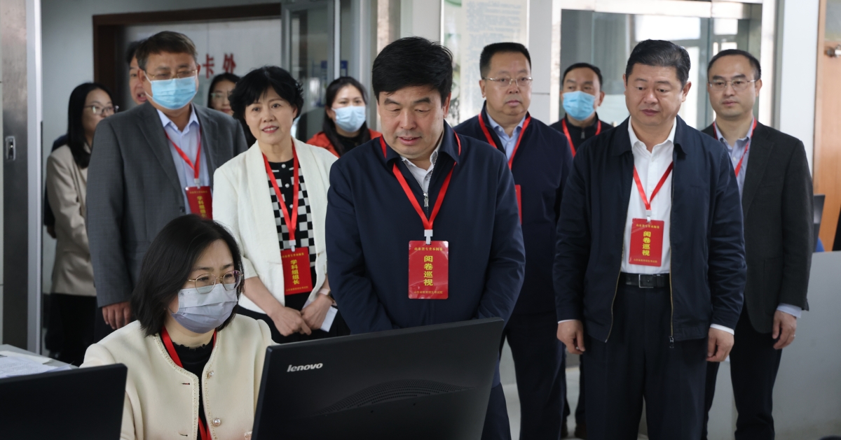 邢順峰一行深入評卷現場,實地檢查了評卷機房、技術支持、醫療保障等工作,了解評卷工作進展情況。隨后,聽取了學校關于評卷工作籌備組織、日程安排、人員選聘、工作進展和評卷質量保障等方面的匯報。