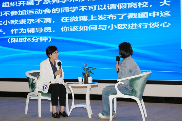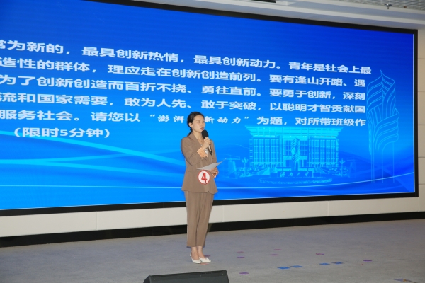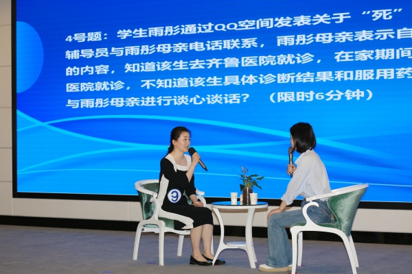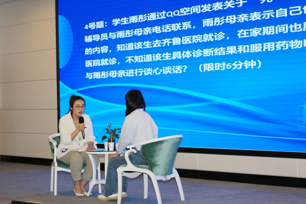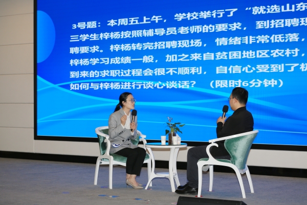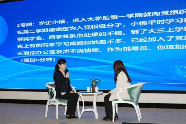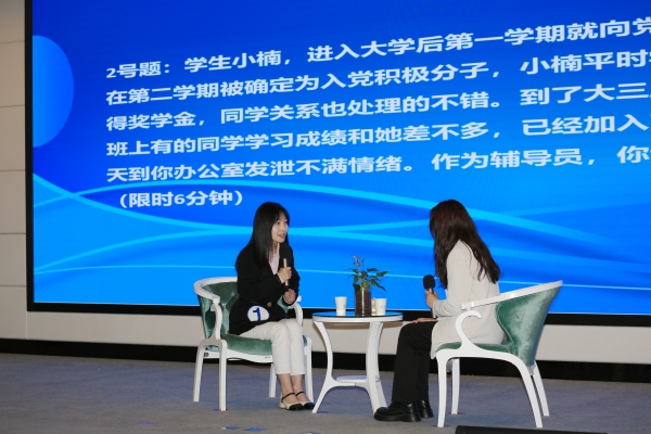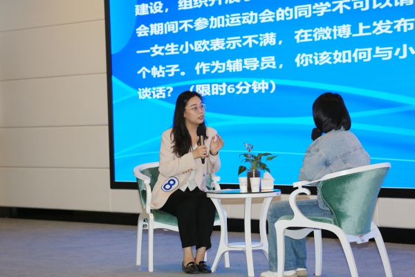 決賽分為談心談話和理論宣講兩個環節,采用隨機抽題、現場演繹、當場出分的方式進行。談心談話環節,參賽選手在助演的配合下,用扎實的理論基礎、專業的溝通技能、靈活的應變能力、真摯的情感表達與學生和家長耐心傾聽、細心疏導、真心服務,以情載理,理情交融,展現了輔導員的擔當和情懷。理論宣講環節,參賽選手以“點亮青春理想”“激昂奮斗旋律”“淬煉斗爭精神”“澎湃創新動力”為題,圍繞學習貫徹落實習近平新時代中國特色社會主義思想,立足時代發展新要求和學生成長新特點,講述身邊的故事,詮釋初心使命,展現了輔導員的專業能力和水平。