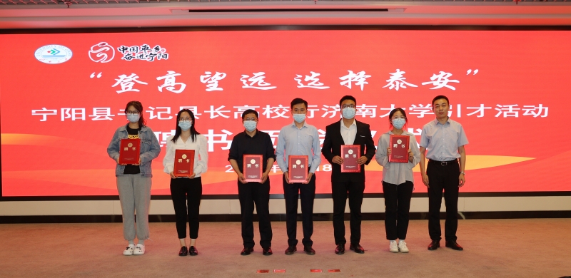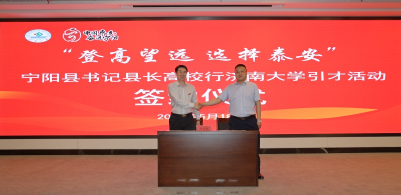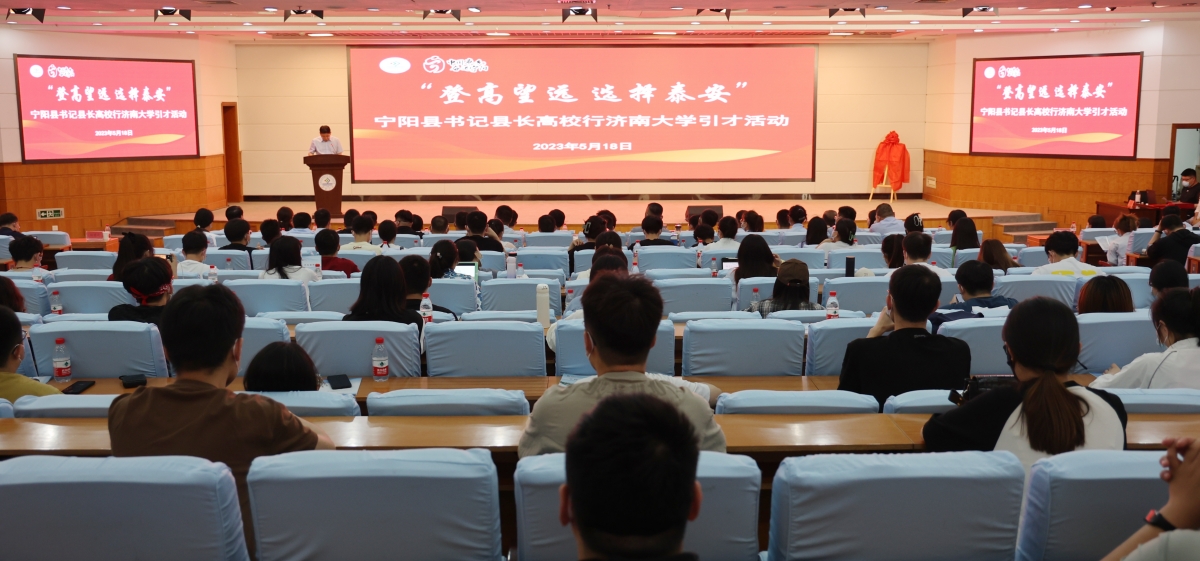 5月18日,“登高望遠 選擇泰安”寧陽縣書記縣長高校行引才活動在我校舉辦。寧陽縣委書記王立軍及部分縣領導,學校黨委書記劉春華,紀委書記、省監委駐濟南大學監察專員續鐵,寧陽縣部分企業代表,學校辦公室、黨委學生工作部、化學化工學院、生物科學與技術學院負責人及師生代表參加活動。活動由學校黨委副書記楊景波主持。