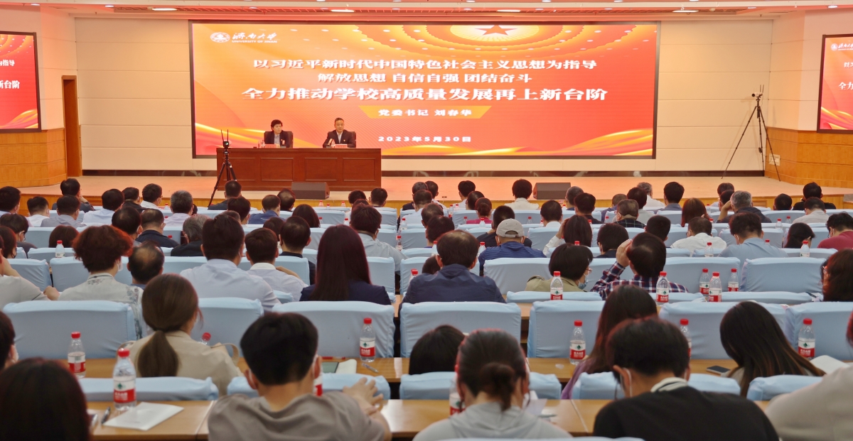 劉春華以“以習近平新時代中國特色社會主義思想為指導 解放思想 自信自強 團結奮斗 全力推動學校高質量發展再上新臺階”為題,從“在提高站位中解放思想,深刻把握習近平新時代中國特色社會主義思想的世界觀和方法論”“在守正創新中自信自強,錨定‘沖一流、進百強’重點任務目標”“在團結奮斗中促進發展,堅定不移堅持和加強黨的全面領導”等三個方面進行系統講解和深入闡釋。