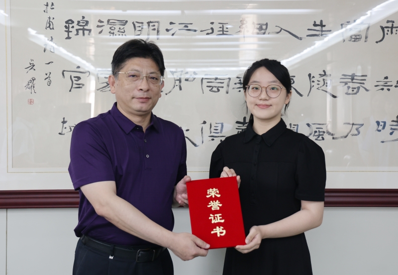 楊景波為獲得宋健獎學金的10位同學頒發了榮譽證書并進行合影留念。