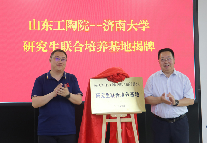 5月30日,濟南大學—山東工業陶瓷研究設計院(以下簡稱山東工陶院)深化合作交流暨研究生聯合培養基地揭牌儀式在山東工陶院舉行。校長劉宗明,中材高新黨委書記、董事長李勇,副校長黃加棟,山東工陶院黨委書記、董事長彭雪飛,黨委(校長)辦公室、研究生院、科技處和材料科學與工程學院負責人及教師、研究生代表,山東工陶院領導班子成員參加了儀式。