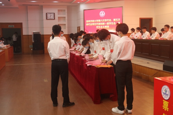 根據大會安排,大會于6月1日審議通過了《大會代表資格審查報告(草案)》《大會日程(草案)》《大會議程(草案)》《大會選舉辦法(草案)》,通過了大會主席團建議名單,大會秘書長、副秘書長建議名單,大會總監票人、監票人名單,濟南大學第六次學生代表大會、第五次研究生代表大會常任代表候選人預備人選名單和新一屆學生會、研究生會主席團成員候選人預備人選名單,并預選產生了濟南大學第六次學生代表大會、第五次研究生代表大會常任代表候選人和新一屆學生會、研究生會主席團成員候選人。