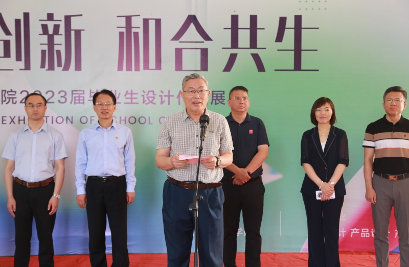 設計學院副院長楊海波首先向學有所成、取得豐碩成果的同學們表示熱烈的祝賀并致開幕詞。他肯定了畢業生們求學生涯的付出和努力,向所有辛勤付出的教師和導師們致以最誠摯的感謝。他以“無界創新·和合共生”為題,希望學院師生將藝術創作與服務美好生活有機耦合,以精美設計與區域經濟社會發展同頻共振,將藝術與科技融合共生,緊扣社會需求,回應時代關切。