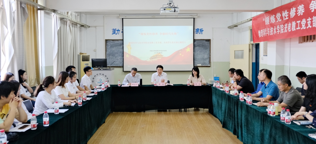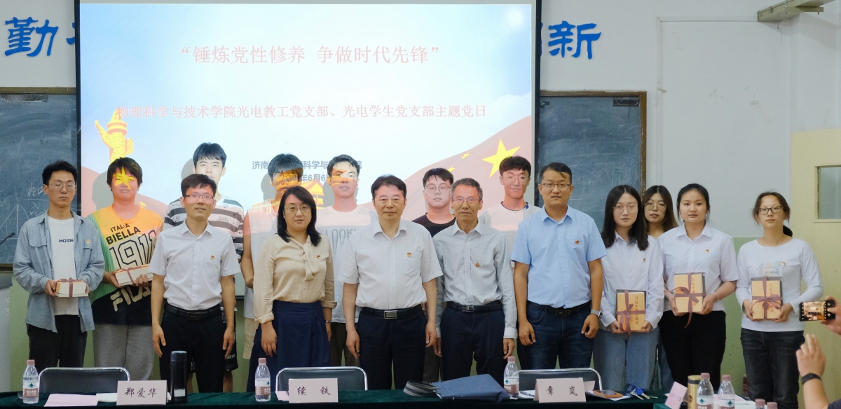 為深入開展學習貫徹習近平新時代中國特色社會主義思想主題教育,全面落實學校黨委部署要求,6月6日,物理科學與技術學院光電教工黨支部和光電學生黨支部聯合開展“錘煉黨性修養 爭做時代先鋒”主題黨日活動。學校黨委常委、紀委書記、省監委駐濟南大學監察專員續鐵出席本次主題黨日活動。本次活動由學院黨委副書記章嵐主持,師生黨員代表參加。