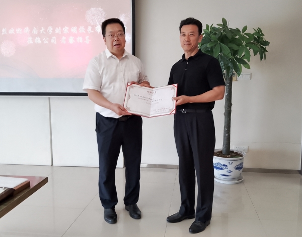劉宗明校長為黃建軍校友頒發濟南大學教育發展基金會突出貢獻獎獎杯和捐贈證書,用以表彰黃建軍長期以來對學校的關心支持;劉宗明校長還向黃建軍會長授牌濟南大學校友聯絡處。建校七十五周年之際,黃建軍校友專門捐贈人民幣三十萬元,用于支持濟南大學體育運動設施條件優化。此次捐贈,是黃建軍校友繼2018年捐贈獎學金五十萬元基礎上的再次捐贈。