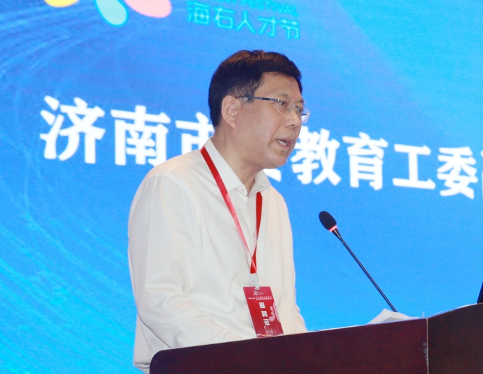 濟南市委教育工委副書記,濟南市教育局黨組成員、副局長方輝致辭。他表示,濟南市高等教育資源豐富,科技實力雄厚,各類人才富集。“海右”人才節是濟南市打造的首個濟南人才品牌,旨在以海納百川的胸懷、尊賢敬才的誠意,歡迎天下英才在濟施展才華、建功立業,為新時代現代化強省會建設貢獻一份力量。濟南市有誠意、有作為,更有信心將泉城濟南打造成一個“各顯其能、各盡其才、各美其美”的成長熱土。