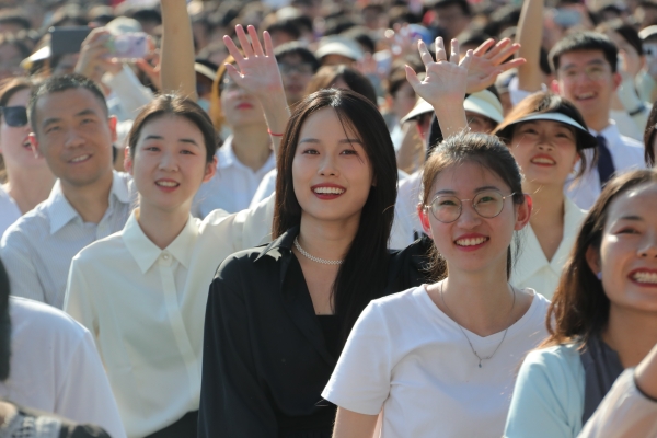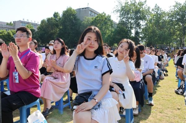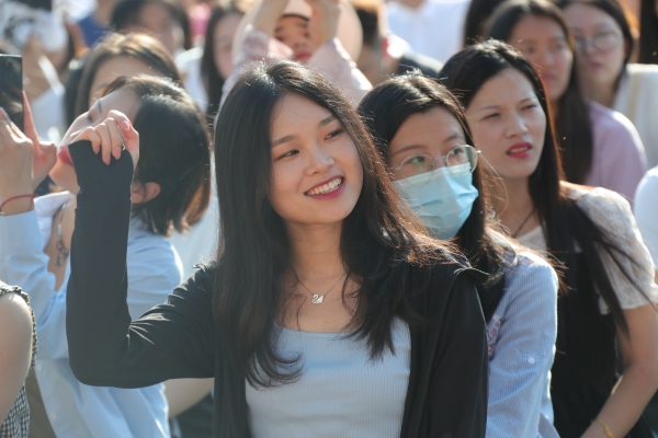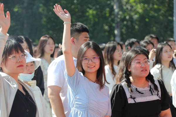 畢業典禮在師生們齊唱《你我同行》的校歌中結束,領導、老師們在畢業歌的旋律中揮手送別2023屆畢業生。