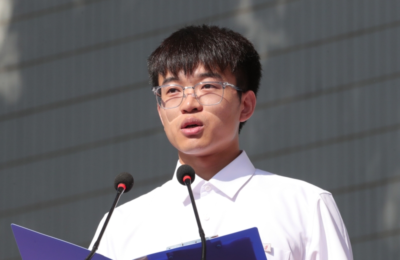 畢業生代表王佳俊在發言中向培育見證他們成長的師長、陪伴支持我們的親友表達最衷心的感謝!他說,我們會不忘“來時路”,做青春涌動的實干家;走好“腳下路”,做胸有丘壑的前行者;砥礪“奮進路”,做守正創新的傳承人。從仰望星空的鄉村少年到腳踏實地的科研小將,用心感受、用情講述根植于濟大人骨子里的紅色基因和紅色血脈,傳承濟大人與祖國同呼吸、共命運的時代故事。我們將個人奮斗的“小目標”融入黨和國家發展的“大藍圖”,以奮斗者的姿態激揚青春夢想。