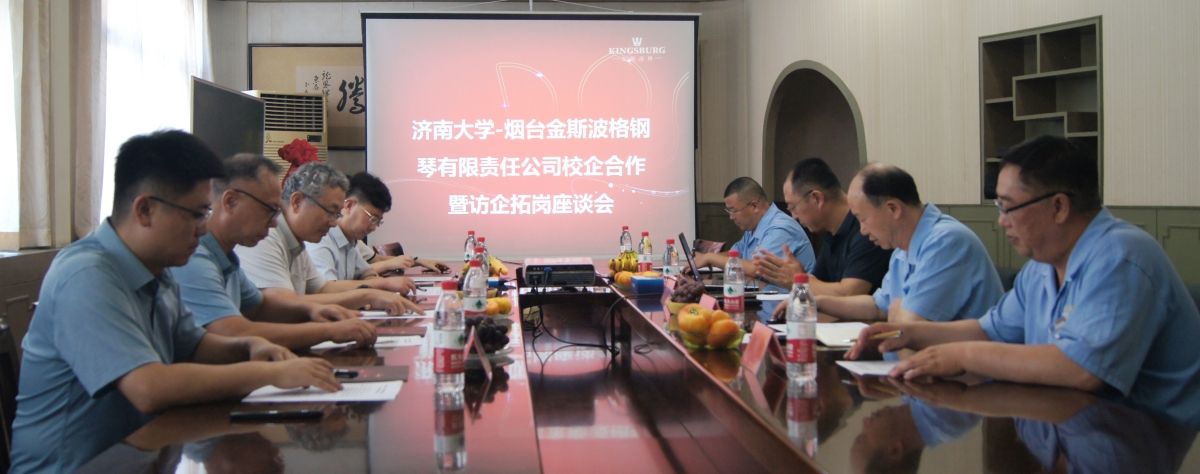 首先,張勇一行到煙臺金斯波格鋼琴有限責任公司進行調研交流。一行人參觀了金斯波格鋼琴生產車間,深入了解企業發展與崗位需求,并進行就業實習基地簽約與授牌儀式。座談會上,王勇強代表公司對張勇副校長一行的到來表示熱烈歡迎。他指出金斯波格鋼琴經過35年的發展,無論從鋼琴品質、技術水平、還是服務能力等方面均已處于行業領先水準。濟南大學音樂學院就業實習基地的建立,將對金斯波格鋼琴在人才儲備和培養方面起到良好的推動作用。張勇指出,自2016年來,濟南大學與公司開展交流合作已久,依托建立的本科教學實踐基地,學生的培養質量獲得行業的高度認可,成效顯著,向煙臺金斯波格鋼琴有限責任公司長期以來對濟南大學的關心和支持表示感謝。他介紹了學校近年來在發展建設中取得的成績,并談到學校在推動校企協同育人,推進產教研融合發展方面的做法。希望雙方通過校企合作專業建設,在平臺和團隊搭建、技術研發、人才培養及畢業生就業等方面繼續深入合作,在優勢互補中實現合作共贏。之后張勇和王勇強代表雙方共同為“濟南大學—煙臺金斯波格鋼琴有限責任公司就業實習基地”揭牌。