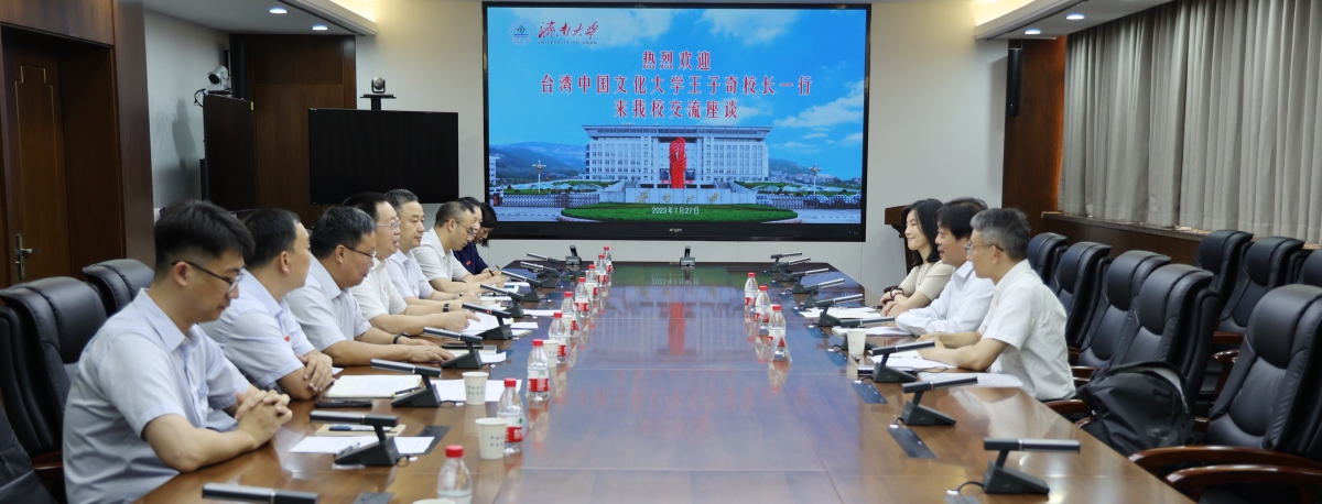劉宗明對王子奇一行的來訪表示歡迎,從歷史、文化等多個維度向來賓介紹了濟南和濟南大學,介紹了我校發展現狀、特色優勢和學科布局,回顧了兩校間的友好合作歷程。他期待雙方未來進一步加強師生交流互訪,圍繞優勢學科和特色方向加深校際合作。他強調,海峽兩岸同根同源、同文同種,通過教育往來,實現兩所學校交流和兩岸交流持續“雙向奔赴”,從而為建立和平穩定的兩岸關系作出濟大貢獻、文大貢獻。