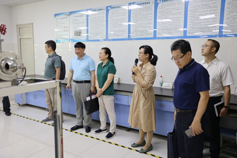 王霞代表學校對專家組蒞臨檢查表示熱烈歡迎和誠摯感謝。劉宗明就濟南大學和化學化工學院發展現狀向專家組進行了介紹。劉宗明強調,專家組進校考察為我校實踐教學高質量發展提供了系統摸底和全面改進的契機,示范中心及相關部門要根據專家組檢查意見和建議,深入做好總結,抓好整改落實,更好地發揮示范引領作用。