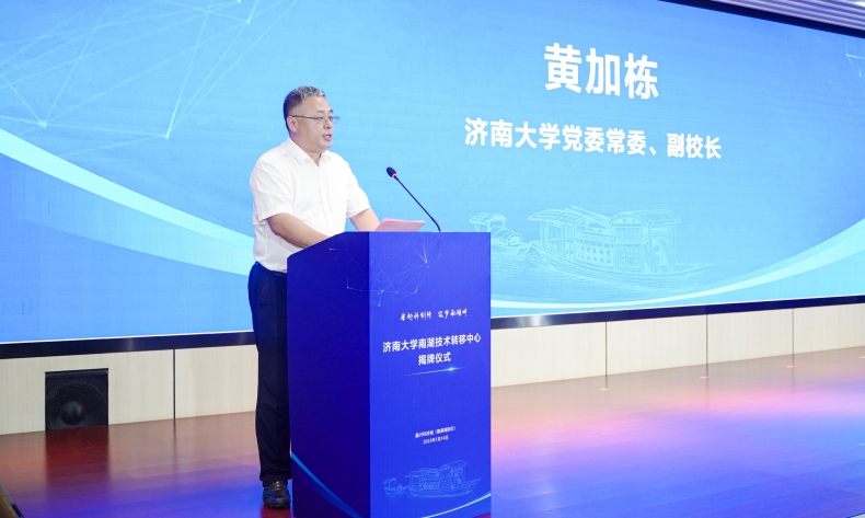 黃加棟在致辭中對南湖區委、區政府關心、支持濟南大學發展表示感謝,介紹了學校最新發展情況,回顧了濟南大學與南湖區合作取得的階段性成果。他指出,學校高度重視科技成果轉化工作,近年來采取了系列措施,取得了較好的成績,濟南大學與嘉興市南湖區共同建設技術轉移中心,有利于進一步推進雙方在科技、教育和人才等方面的合作,促進南湖區產業發展。他希望南湖區委、區政府繼續關心支持濟南大學發展和濟南大學(南湖)技術轉移中心建設,學校將以該中心為載體和窗口務實推進相關工作,發揮濟南大學的科技和人才優勢,為南湖區經濟和社會發展作出更大貢獻。