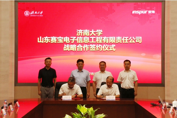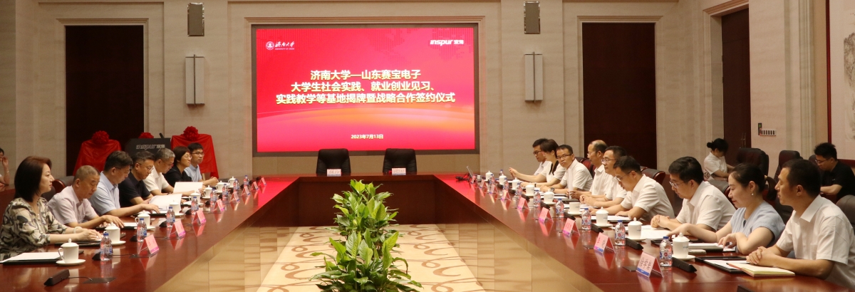 在浪潮科技園,楊景波一行走訪慰問數學科學學院實踐團師生,并與山東賽寶電子信息工程有限責任公司舉行社會實踐、就業創業見習、實踐教學基地簽約暨揭牌儀式。浪潮科技黨委副書記、總經理張峰對楊景波一行的到來表示熱烈歡迎,他簡要介紹了浪潮科技和山東賽寶電子信息工程有限責任公司近年來的改革發展情況,并表示希望校企雙方以此為契機,在產學研結合、應用型人才培養、實踐教學、科研攻關等方面深度融合、緊密合作,為打造山東省人才高地、高質量發展高地提供有力支撐。楊景波介紹了濟南大學的歷史沿革、辦學情況、人才培養和科學研究等方面的情況,他指出,山東賽寶電子信息工程有限責任公司的產業定位、發展目標與濟南大學學科專業、社會服務等高度契合,在人才培養、科研提升、智慧校園、實習實踐基地建設等方面具有廣闊的合作前景,下一步,學校將精準對接公司創新發展需要,進一步提高人才培養質量,著力打造校企命運共同體,實現優勢互補、資源共享、共同發展。數學科學學院黨委書記侯啟海表示,希望雙方立足各自學科和產業優勢,尤其是在大數據、人工智能等復合型人才培養方面,深化合作、互惠雙贏。