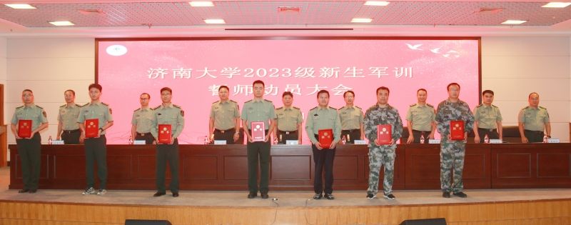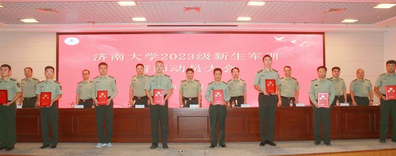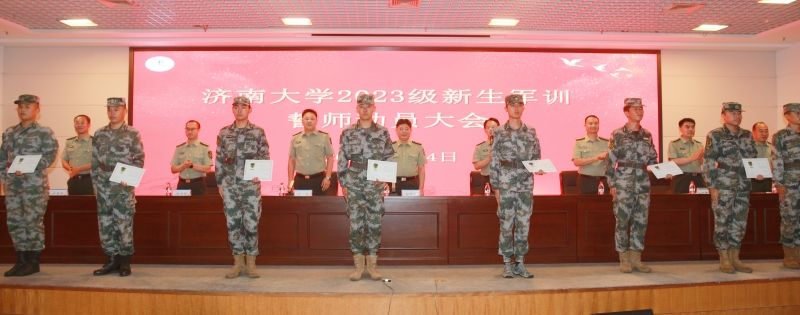 會上,賈海寧宣讀了各軍訓團編制命令和軍事理論課教師聘用名單,與會領導為軍事理論課教師和承訓教官分別頒發了聘書和教官資格證書。學校軍訓教導大隊大隊長、2021年退役士兵、體育學院學生程建峰代表全體承訓教官發言,承諾將科學施訓、嚴格管理,嚴格按照條令條例帶訓,以良好的形象使受訓人員學有榜樣,練有標桿,樹立“文明之師”的良好形象,確保訓練任務高標準、高質量完成。軍事理論課教師代表、體育學院輔導員王召鎮在發言中表示,全體軍事理論課教師將始終不辱使命,全身心投入教育事業,不懈努力提高教學水平,傳承軍事智慧,傳授軍事知識,培養學生堅韌不拔的意志和創新思維,培養出更多優秀的軍事理論人才,為實現國防強大和社會進步貢獻我們的智慧和汗水。