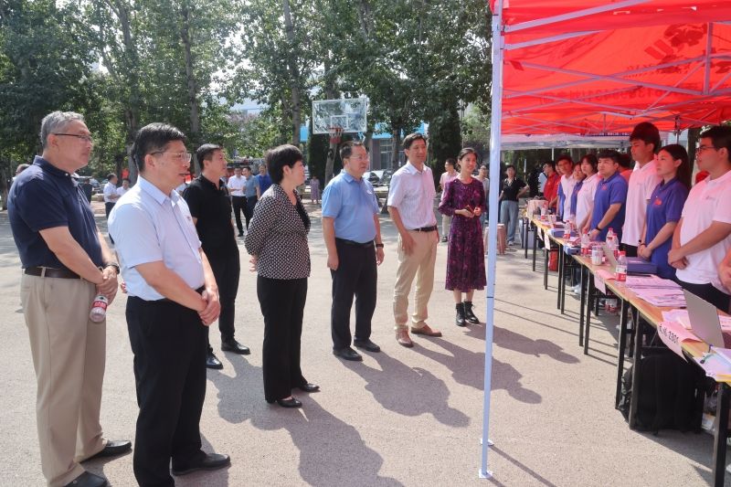 迎新當(dāng)天,學(xué)校黨委書(shū)記劉春華、校長(zhǎng)劉宗明、黨委副書(shū)記楊景波、副校長(zhǎng)張勇一行來(lái)到主校區(qū)和舜耕校區(qū)迎新現(xiàn)場(chǎng),看望前來(lái)報(bào)到的新生和家長(zhǎng),親切慰問(wèn)奮戰(zhàn)在迎新一線(xiàn)的工作人員并實(shí)地察看了學(xué)生公寓等基礎(chǔ)設(shè)施。學(xué)校辦公室、黨委宣傳部、黨委學(xué)生工作部、安全管理處、教務(wù)處、黨委研究生工作部、實(shí)驗(yàn)室與資產(chǎn)管理處、后勤管理處、信息管理處、團(tuán)委等部門(mén)負(fù)責(zé)人,也一同來(lái)到迎新現(xiàn)場(chǎng)。學(xué)校領(lǐng)導(dǎo)在迎新報(bào)到點(diǎn)認(rèn)真聽(tīng)取了各學(xué)院迎新工作匯報(bào)、觀看了各單位制作的迎新宣傳展板,詳細(xì)了解迎新工作流程和新生報(bào)到情況,與廣大工作人員、志愿者以及2023級(jí)新同學(xué)、家長(zhǎng)親切交談、合影留念。學(xué)校領(lǐng)導(dǎo)鼓勵(lì)新生要志存高遠(yuǎn),有理想、有追求;要腳踏實(shí)地,學(xué)好知識(shí),增長(zhǎng)才干,有擔(dān)當(dāng)、有作為;要涵養(yǎng)品德,情理并修,有品質(zhì)、有修為,在拼搏的青春中書(shū)寫(xiě)精彩人生。在與學(xué)生家長(zhǎng)的交談中,學(xué)校領(lǐng)導(dǎo)表示,請(qǐng)家長(zhǎng)放心,學(xué)校將為學(xué)生提供良好的學(xué)習(xí)和生活條件,保障學(xué)生順利完成學(xué)業(yè)。9月5日晚,楊景波來(lái)到濟(jì)南西站、濟(jì)南站等地看望慰問(wèn)迎新工作人員,歡迎新同學(xué)的到來(lái)。