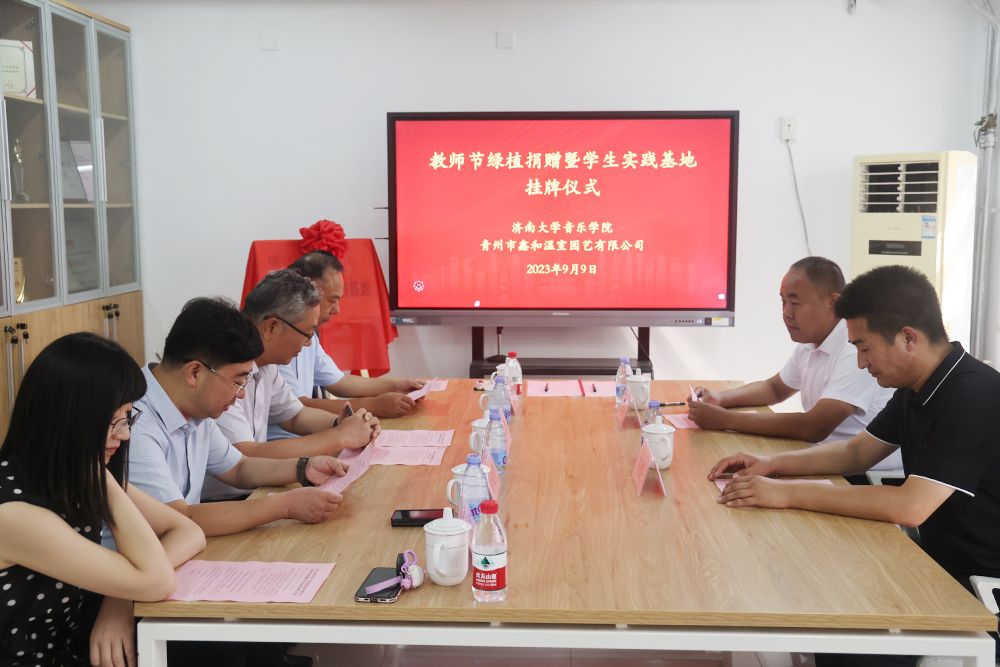 9月9日,音樂學(xué)院與青州鑫和溫室園藝有限公司舉行教師節(jié)綠植捐贈暨大學(xué)生實踐基地掛牌儀式。濟南大學(xué)黨委常委、副校長張勇,青州鑫和溫室園藝有限公司董事長趙遠濤、青州鑫和溫室園藝有限公司經(jīng)理劉建行、濟南大學(xué)音樂學(xué)院班子全體成員及部分教師代表參加此次活動。活動由音樂學(xué)院黨委書記孫翔玲主持。