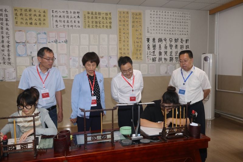 進校考查期間,專家組依據(jù)師范類專業(yè)認證標準,對8個一級指標、39個二級指標進行了考查工作。召開了預(yù)備會、專家見面會、碰頭會、認證結(jié)論評議會等工作會議5次,聽課看課20節(jié)次,測評師范生技能展示學(xué)生20人次,調(diào)閱了畢業(yè)論文100份,教育實習(xí)材料100份,抽查了25門課程的試卷和考核材料,深度訪談了教學(xué)副校長、學(xué)院負責(zé)人、職能部門負責(zé)人、專業(yè)負責(zé)人等46人次,召開了教師、在校生、畢業(yè)生、用人單位、實踐基地負責(zé)人等各類座談會10次,共計98人。實地考查了智慧教室、書法教室、圖書館、教師發(fā)展中心、心理咨詢工作室、融合教育中心,參觀了藝美空間師范專業(yè)師生書法作品展等。專家組還實地走訪了濟南第九中學(xué)、市中區(qū)泉海學(xué)校2個教育實踐基地,同時專家組認真查閱了專業(yè)所提供的所有的支撐佐證材料,盡可能全面獲取專業(yè)的教育教學(xué)信息。