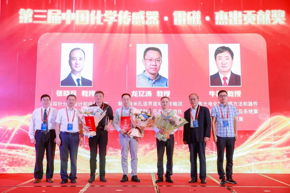 開幕式上同時頒發(fā)了2023年度“中國化學(xué)傳感器雷磁終身成就獎”和“中國化學(xué)傳感器雷磁杰出貢獻(xiàn)獎”。中國科學(xué)院江桂斌院士獲得終身成就獎,張曉兵教授、龍億濤教授和牛利教授獲得杰出貢獻(xiàn)獎。