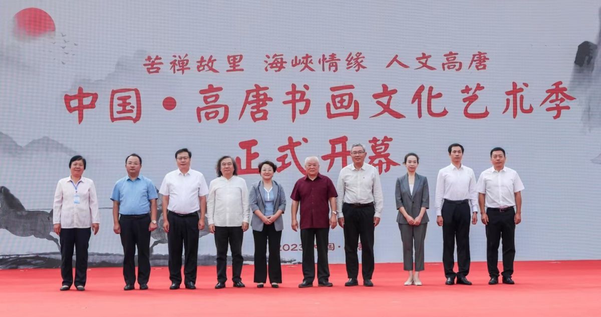文化和旅游部人才中心原黨委書記、中國國際書畫藝術研究會名譽會長趙樹棟,聊城市副市長馬衛紅,濟南大學黨委常委、副校長張勇,濟南大學客座教授、山東省美術家協會榮譽主席張望,聊城市文旅局黨組書記、局長周江濤,高唐縣委書記楊新勝,縣委副書記、縣長楊曙光等共同啟動藝術季開幕。