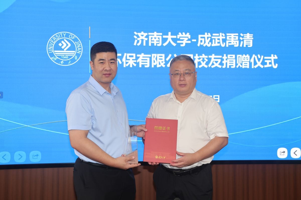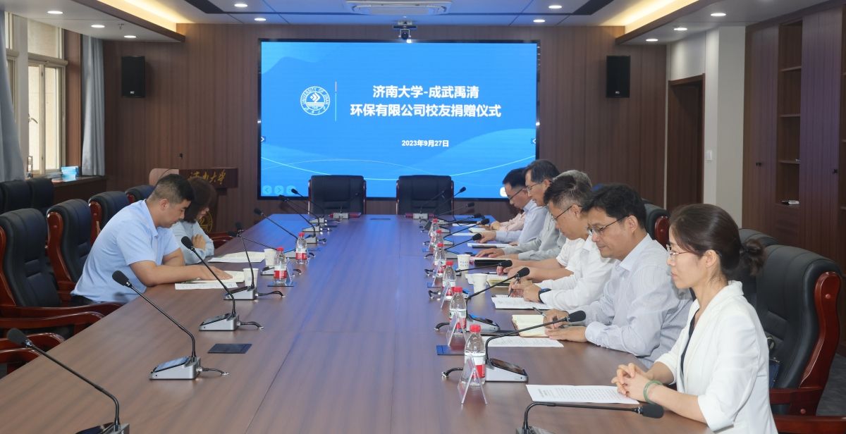 9月27日,濟南大學—成武禹清環(huán)保有限公司捐贈儀式在我校舉行。學校黨委常委、副校長黃加棟,化學化工學院2006屆校友、成武禹清環(huán)保有限公司總經(jīng)理王大國出席捐贈儀式,教育發(fā)展基金會辦公室、化學化工學院、外國語學院相關(guān)負責人參加了活動。儀式由化學化工學院黨委書記賀銘主持。
