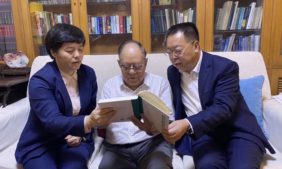 92歲高齡的宋健院士精神矍鑠、思維敏捷。在聽取學(xué)校領(lǐng)導(dǎo)的匯報后,宋健院士非常高興,對學(xué)校取得的成績充分肯定,并表示將持續(xù)關(guān)注、全力支持學(xué)校發(fā)展。宋健院士深情回顧了在濟(jì)南大學(xué)的求學(xué)時光和難忘歲月。針對學(xué)校高質(zhì)量發(fā)展,宋健院士特別指出,學(xué)校要積極引進(jìn)海內(nèi)外高層次人才,充分發(fā)揮學(xué)校材料科學(xué)等傳統(tǒng)學(xué)科優(yōu)勢,瞄準(zhǔn)世界科技前沿,服務(wù)國家戰(zhàn)略需求,針對超導(dǎo)陶瓷、凝聚態(tài)物理等科學(xué)領(lǐng)域,大力開展材料和化工等學(xué)科領(lǐng)域的應(yīng)用研究、物理等學(xué)科領(lǐng)域的基礎(chǔ)科學(xué)研究,推動學(xué)校辦學(xué)水平進(jìn)一步提高。宋健院士將自己的專著《科教興邦草吟》贈送給學(xué)校,為學(xué)校送上祝福。