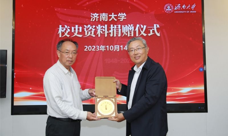 儀式上,畢葉校友介紹了這次捐贈(zèng)物品的基本情況,深情回憶了父母和自己在濟(jì)大的工作經(jīng)歷以及生活點(diǎn)滴。畢葉校友代表家人向濟(jì)南大學(xué)無償捐贈(zèng)其父親畢訓(xùn)、母親孫黛在學(xué)校發(fā)展早期工作時(shí)使用過的部分實(shí)物和活動(dòng)照片,包括華東軍政委員會(huì)工業(yè)部山東工業(yè)干部學(xué)校的早期校徽、手稿、證書、獎(jiǎng)狀在內(nèi)的珍貴文物30余件。