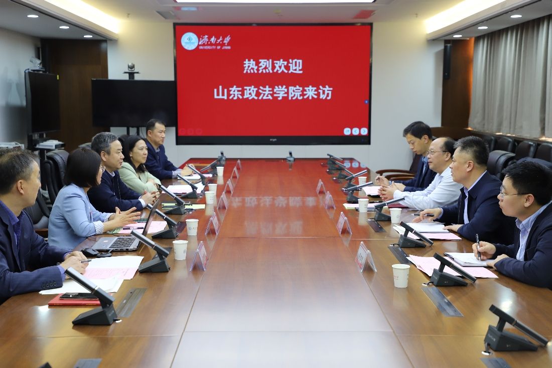 查玉喜、商華對(duì)趙斌一行的來(lái)訪表示歡迎,并介紹了學(xué)校的基本情況和當(dāng)前開(kāi)展的主要工作,希望兩校繼續(xù)加強(qiáng)合作,強(qiáng)化交流溝通,相互學(xué)習(xí)經(jīng)驗(yàn),攜手推進(jìn)兩校工作再上新臺(tái)階。趙斌介紹了山東政法學(xué)院的發(fā)展歷史和工作近況,對(duì)濟(jì)南大學(xué)各項(xiàng)工作取得的成績(jī)表示贊賞。