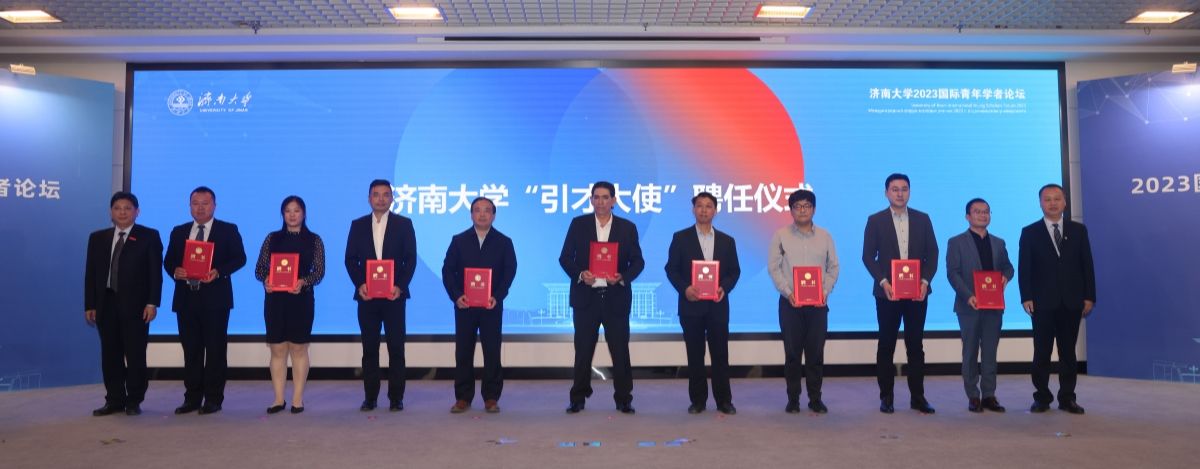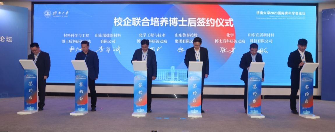 論壇還舉行了“濟(jì)南大學(xué)引才大使”聘任儀式及濟(jì)南大學(xué)博士后流動(dòng)站與相關(guān)企業(yè)博士后工作站聯(lián)合培養(yǎng)博士后簽約儀式。省人才集團(tuán)董事長王衛(wèi)中和濟(jì)南大學(xué)黨委副書記楊景波為“引才大使”頒發(fā)了聘書。