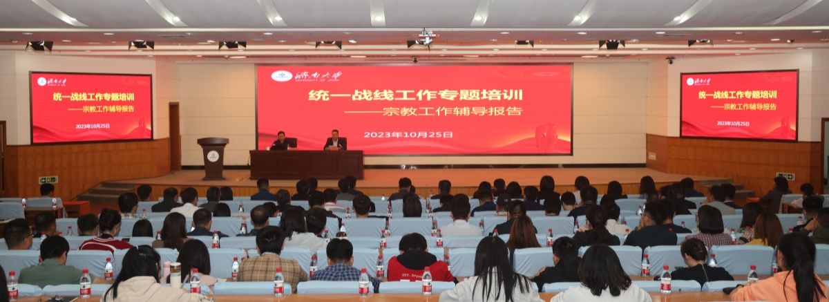 為深入學(xué)習(xí)貫徹習(xí)近平總書記關(guān)于做好新時(shí)代黨的統(tǒng)一戰(zhàn)線工作的重要思想、關(guān)于加強(qiáng)和改進(jìn)民族工作的重要思想、關(guān)于宗教工作的重要論述和上級(jí)有關(guān)文件精神,不斷提高學(xué)校黨員干部做好宗教工作的能力和水平,10月25日,學(xué)校統(tǒng)戰(zhàn)工作專題培訓(xùn)——宗教工作輔導(dǎo)報(bào)告會(huì)在第一報(bào)告廳舉行。報(bào)告會(huì)邀請(qǐng)省委統(tǒng)戰(zhàn)部一級(jí)調(diào)研員王鳳全作專題輔導(dǎo)報(bào)告。省教育廳(省委教育工委)學(xué)校統(tǒng)戰(zhàn)處處長(zhǎng)徐文元出席報(bào)告會(huì),學(xué)校黨委常委、統(tǒng)戰(zhàn)部部長(zhǎng)徐慶國(guó)主持報(bào)告會(huì),學(xué)校統(tǒng)戰(zhàn)工作領(lǐng)導(dǎo)小組成員、全體學(xué)工人員和統(tǒng)戰(zhàn)部全體工作人員參加了專題培訓(xùn)。