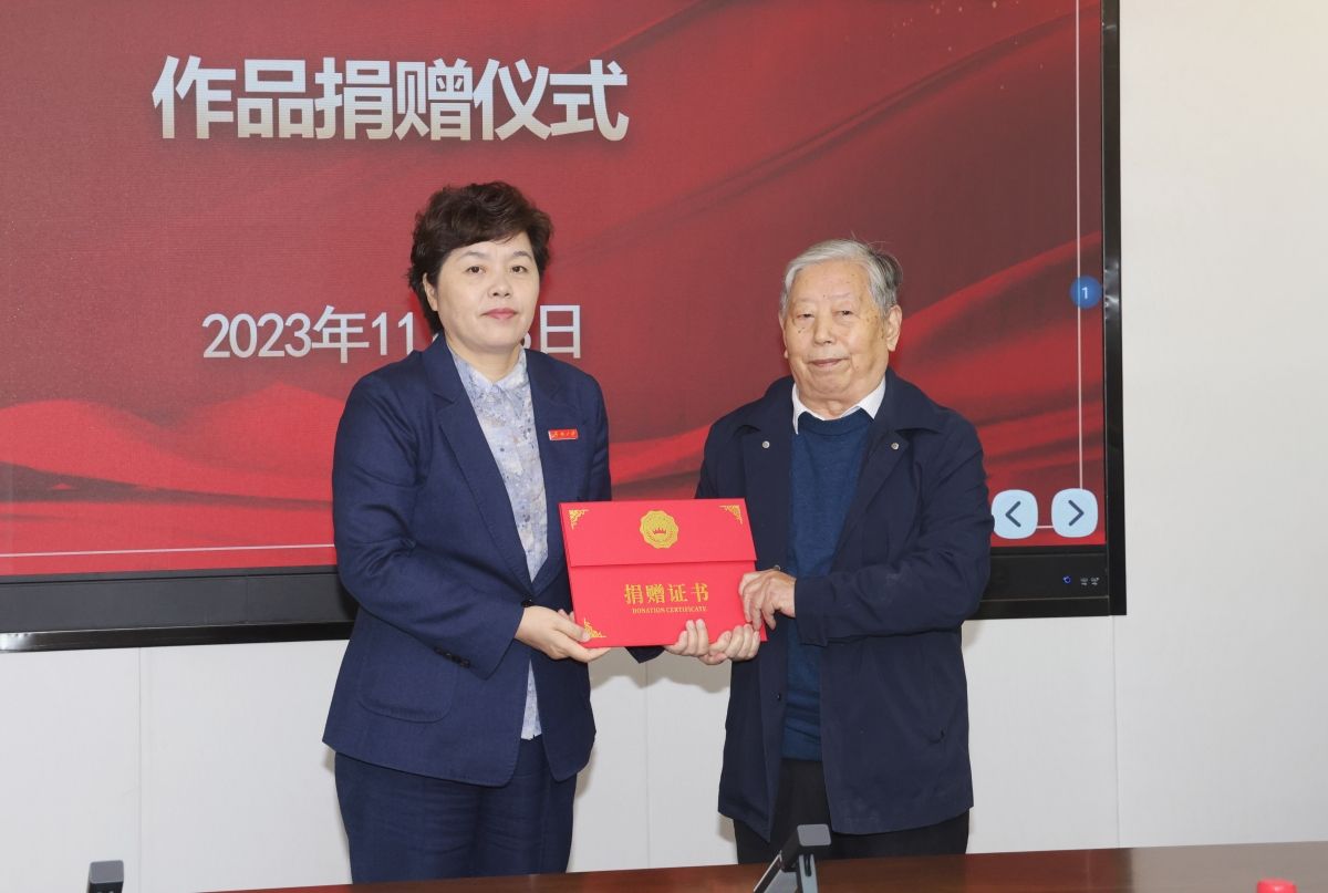 中國杰出毛體書法家賀惠邦,中國收藏家協(xié)會副會長兼《中國收藏家》會刊主編維佳,山東省教育廳(省委教育工委)二級巡視員鄧俊慶,山東省老教授協(xié)會會長趙彥修、常務(wù)副會長毛有高、副會長劉邦治、鄭三,學(xué)校黨委書記劉春華、黨委副書記查玉喜,賀惠邦先生親屬代表,學(xué)校辦公室、黨委宣傳部、離退休工作處、合作發(fā)展處、圖書館、檔案館(校史館)、馬克思主義學(xué)院、美術(shù)與設(shè)計學(xué)院負責同志,部分學(xué)生代表出席活動。學(xué)校黨委常委、宣傳部部長賈海寧主持捐贈儀式。