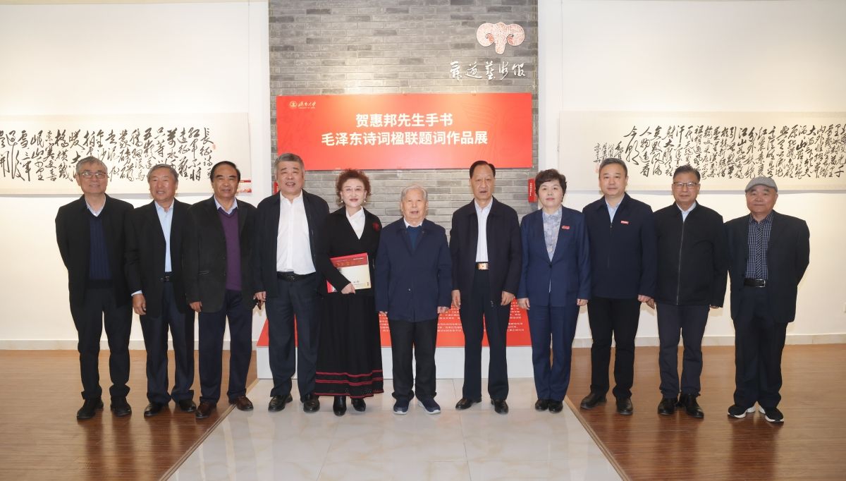 趙彥修在致辭中指出,在濟南大學(xué)舉辦本次捐贈儀式暨作品展,既是對新中國開國領(lǐng)袖毛澤東同志的深情紀念,也是山東省老教授協(xié)會和濟南大學(xué)推進紅色文化進校園的重要舉措,是學(xué)習貫徹習近平文化思想的具體行動。他對賀惠邦先生對毛體書法的貢獻和筆耕不輟60年研習毛體書法的執(zhí)著精神表示敬佩,祝愿濟南大學(xué)通過本次活動,繼續(xù)發(fā)揚優(yōu)秀傳統(tǒng)文化和紅色文化育人特色,在培養(yǎng)擔當民族復(fù)興大業(yè)的優(yōu)秀人才上取得更大更多成績。