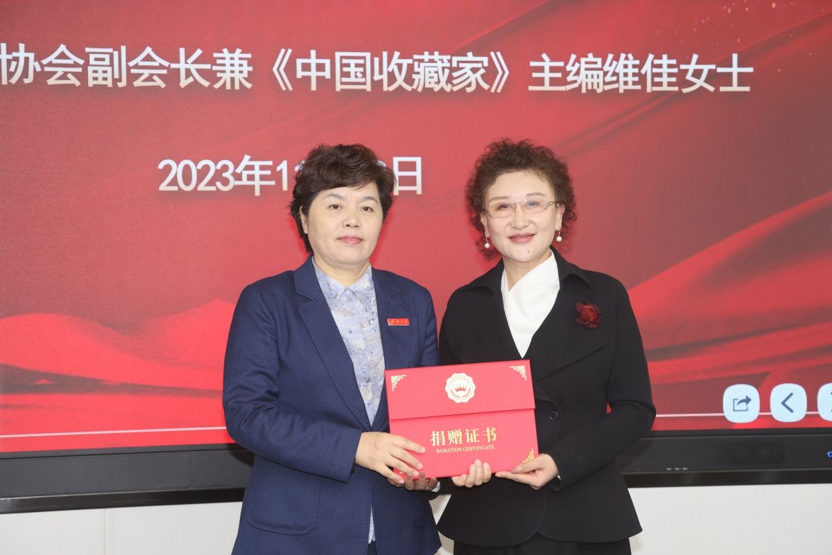 捐贈儀式開始前,劉春華與來校嘉賓一一握手進行交流,向賀惠邦先生及親屬、維佳副會長,以及長期以來關(guān)心支持學(xué)校事業(yè)發(fā)展的山東省教育廳、中國收藏家協(xié)會、山東省老教授協(xié)會領(lǐng)導(dǎo)嘉賓表示熱烈歡迎和由衷感謝,并強調(diào)學(xué)校將管好用好紅色教育資源,勇?lián)⒌聵淙烁救蝿?wù)。