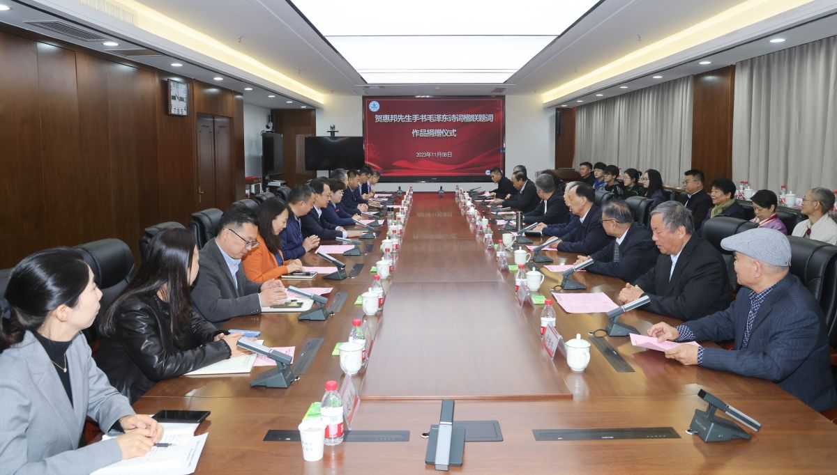 為深入學(xué)習貫徹習近平文化思想,貫徹落實黨的二十大關(guān)于文化建設(shè)的戰(zhàn)略部署,11月8日,學(xué)校舉辦賀惠邦先生手書毛澤東詩詞楹聯(lián)題詞作品捐贈儀式暨作品展、《沒有共產(chǎn)黨就沒有新中國》百年館藏報紙資料捐贈儀式。