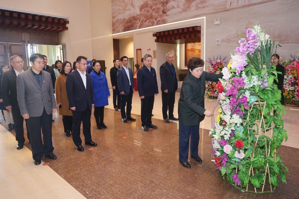 在孔繁森同志紀(jì)念館大廳,學(xué)校黨委理論學(xué)習(xí)中心組向孔繁森同志塑像敬獻(xiàn)花籃,深切緬懷他的感人事跡,感悟他的崇高精神。