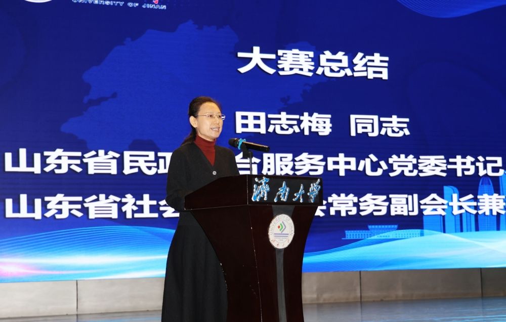 下午2:30,大賽閉幕式和頒獎(jiǎng)儀式舉行。閉幕式由濟(jì)南大學(xué)政法學(xué)院副院長(zhǎng)朱麗敏主持,山東省社會(huì)工作協(xié)會(huì)會(huì)長(zhǎng)、山東大學(xué)哲學(xué)與社會(huì)發(fā)展學(xué)院教授高鑒國(guó),山東省民政綜合服務(wù)中心黨委書(shū)記、主任、山東省社會(huì)工作協(xié)會(huì)常務(wù)副會(huì)長(zhǎng)兼秘書(shū)長(zhǎng)田志梅,濟(jì)南大學(xué)黨委學(xué)生工作部(處)副部(處)長(zhǎng)張晶、濟(jì)南大學(xué)團(tuán)委副書(shū)記兼創(chuàng)新創(chuàng)業(yè)學(xué)院院長(zhǎng)紀(jì)祥,濟(jì)南大學(xué)政法學(xué)院黨委書(shū)記李春慧、院長(zhǎng)高功敬、黨委副書(shū)記李濤出席并為獲獎(jiǎng)團(tuán)隊(duì)頒獎(jiǎng)。