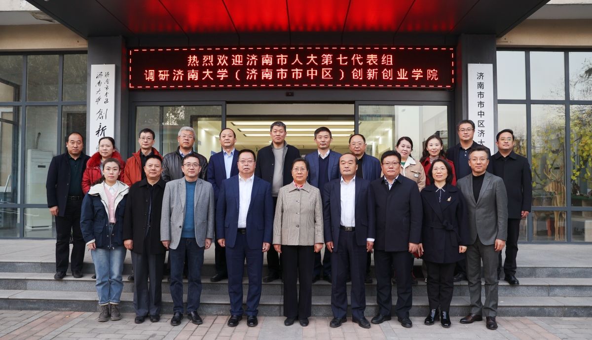12月7日,濟南市第十八屆人民代表大會第七代表小組來我校專題調研創新創業工作。濟南市人大常委會副主任鞏憲群,市中區人大常委會主任秦光強,濟南大學黨委副書記、校長劉宗明及七組其他代表參加活動。學校黨委常委、副校長王霞,市中區政府有關領導,學校黨委學生工作部(處)、合作發展處、團委 創新創業學院負責同志陪同調研。