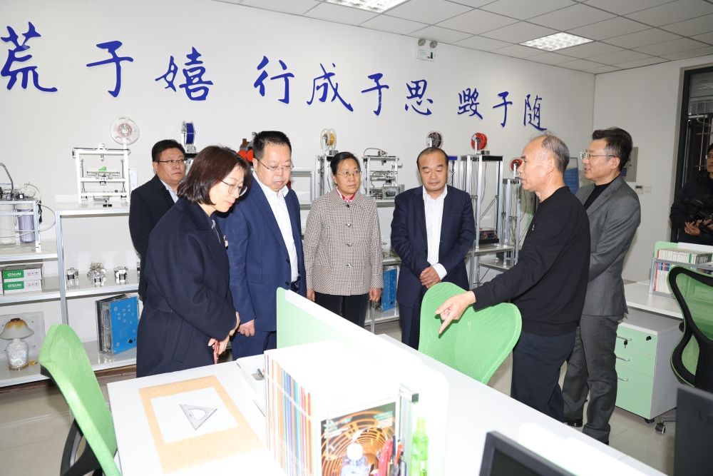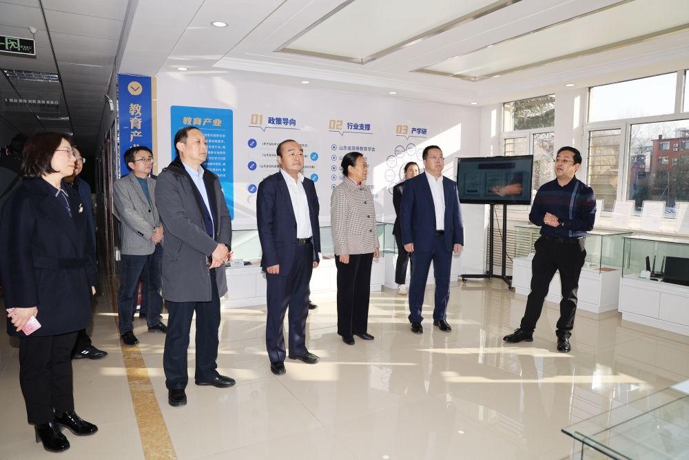 調研組實地走訪創新創業學院,全面考察園區運營情況及相關政策措施實施情況,詳細了解近年來學校在創新創業領域取得的成效;參觀了入駐孵化企業齊魯現代教育文化集團、濟南大學廣可文物保護創新研究院和易構實驗室;現場聽取團委書記胡春毅對學院發展歷程、規劃建設、發展理念、取得成果的匯報。