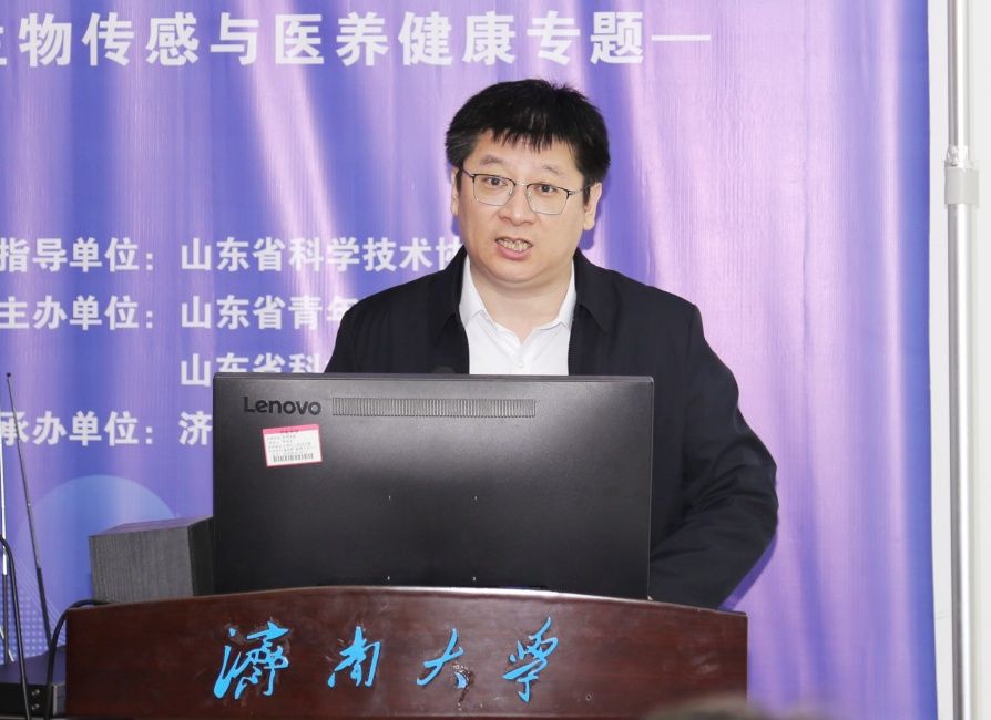 12月9日,由山東省科學(xué)技術(shù)協(xié)會(huì)指導(dǎo),山東省青年科學(xué)家協(xié)會(huì)、山東省科技工作者服務(wù)中心主辦,濟(jì)南大學(xué)承辦的首屆青年科學(xué)家創(chuàng)新發(fā)展大會(huì)系列活動(dòng)——第43期山東省青年科學(xué)家沙龍(生物傳感與醫(yī)養(yǎng)健康專(zhuān)題)在我校舉辦。山東省科協(xié)黨組成員、副主席舒明雷,湖南師范大學(xué)國(guó)家杰青楊榮華教授,西南大學(xué)發(fā)光與實(shí)時(shí)分析教育部重點(diǎn)實(shí)驗(yàn)室主任袁若教授、山東師范大學(xué)國(guó)家級(jí)人才李娜教授、山東師范大學(xué)國(guó)家級(jí)人才李平教授、青島農(nóng)業(yè)大學(xué)省級(jí)人才李峰教授、湖州師范學(xué)院省級(jí)人才王樺教授出席沙龍。我校黨委常委、副校長(zhǎng)黃加棟,科技處、化學(xué)化工學(xué)院、生物科學(xué)與技術(shù)學(xué)院、前沿交叉科學(xué)研究院、智能材料與工程研究院等部門(mén)和單位的120余名師生參加了活動(dòng)。沙龍開(kāi)幕式由科技處處長(zhǎng)顏梅主持。