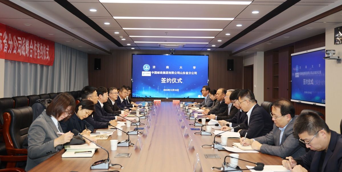 12月15日,濟(jì)南大學(xué)與中國(guó)郵政集團(tuán)有限公司山東省分公司(以下簡(jiǎn)稱“山東郵政”)戰(zhàn)略合作簽約儀式舉行。簽約儀式前,學(xué)校校長(zhǎng)劉宗明會(huì)見了山東省分公司副總經(jīng)理司平一行。學(xué)校黨委常委、副校長(zhǎng)黃加棟,山東郵政寄遞事業(yè)部、政企客戶事業(yè)部、濟(jì)南市分公司相關(guān)負(fù)責(zé)人,學(xué)校黨委宣傳部、教務(wù)處、實(shí)驗(yàn)室與資產(chǎn)管理處、后勤管理處、合作發(fā)展處、團(tuán)委等有關(guān)負(fù)責(zé)同志參加簽約活動(dòng)。簽約儀式由合作發(fā)展處副處長(zhǎng)陳廣立主持。