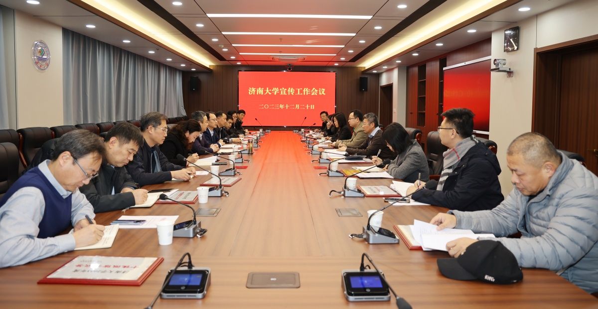 會上,賈海寧通報了2023年學(xué)校宣傳工作總體情況,就網(wǎng)絡(luò)輿情監(jiān)測預(yù)警及處置、新媒體管理等制度修訂情況進行了說明。會議傳達了駐濟高校“五必管”專題座談會精神,并對2023年度學(xué)校“十佳網(wǎng)站”“十佳微信公眾號”獲獎單位進行表彰。