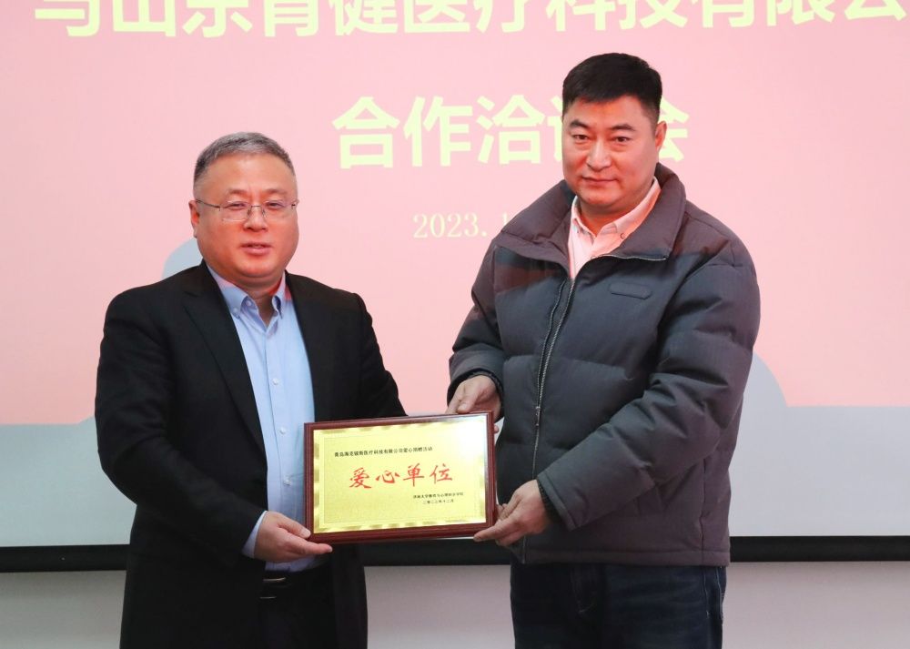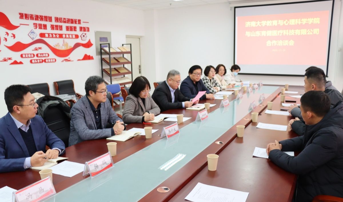 黃加棟對鄒雪茜和杜華民一行表示歡迎,感謝山東育健醫(yī)療科技有限公司的愛心善舉,期待教育與心理科學(xué)學(xué)院與山東育健醫(yī)療科技有限公司聯(lián)合成立研究院后能夠開展更深層次的交流與合作,并表示濟南大學(xué)一定會把這份愛心轉(zhuǎn)化為發(fā)展的動力,用優(yōu)異的育人成果來回饋社會。鄒雪茜感謝教育與心理科學(xué)學(xué)院給予山東育健醫(yī)療科技有限公司此次合作機會,公司后續(xù)將與學(xué)院在成果轉(zhuǎn)化、人才培養(yǎng)、社會服務(wù)等方面開展合作,全力支持學(xué)院發(fā)展。