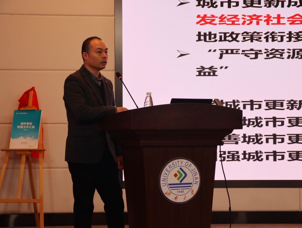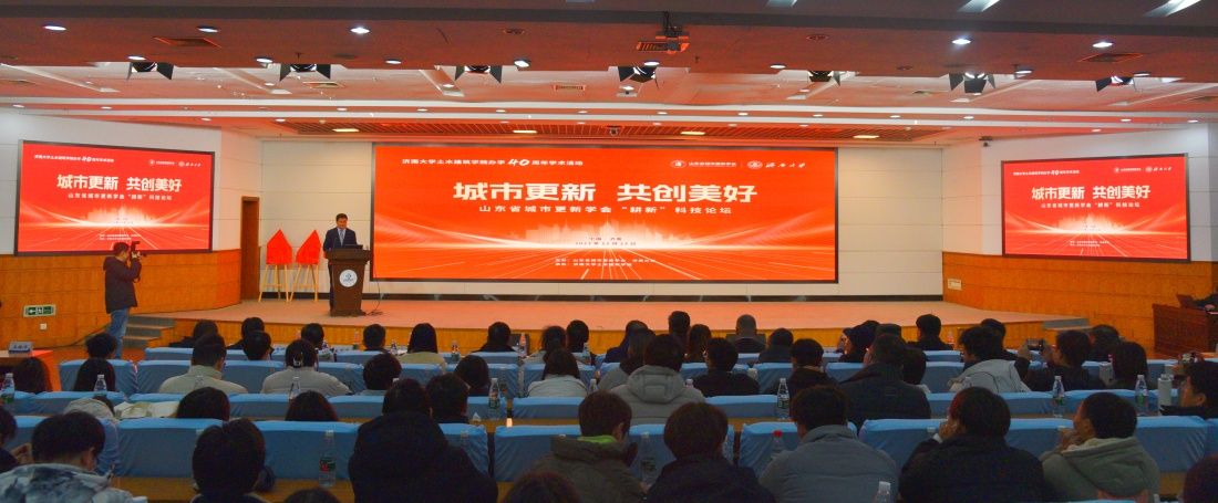 12月23日,由山東省城市更新學(xué)會、濟南大學(xué)共同主辦,我校土木建筑學(xué)院承辦的山東省城市更新學(xué)會第二期“耕新”科技論壇在濟南大學(xué)召開。山東省科學(xué)技術(shù)協(xié)會學(xué)會部部長、一級調(diào)研員葛玉芝,山東省住房和城鄉(xiāng)建設(shè)廳原副廳長、一級巡視員耿慶海,山東省政協(xié)辦公廳原機關(guān)黨委副書記、一級巡視員薛相銳,濟南大學(xué)黨委常委、副校長黃加棟出席了活動。山東省城市更新學(xué)會領(lǐng)導(dǎo)班子成員,濟南大學(xué)科技處、土木建筑學(xué)院相關(guān)負(fù)責(zé)同志,山東省城市更新學(xué)會會員代表、土木建筑學(xué)院師生代表參會。會議由山東省城市更新學(xué)會副會長、土木建筑學(xué)院王林申主持。