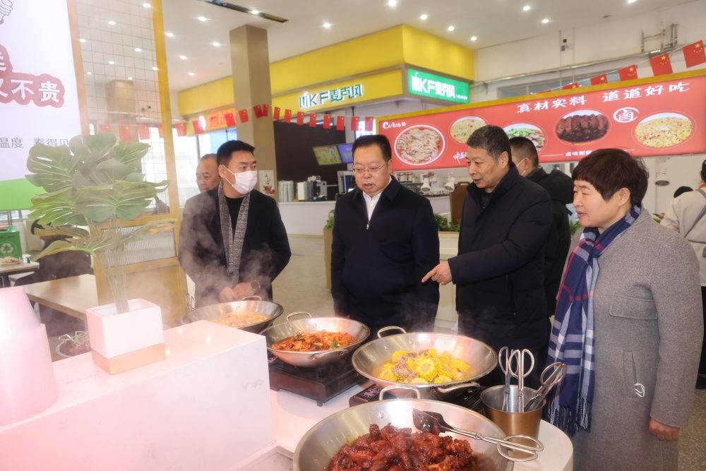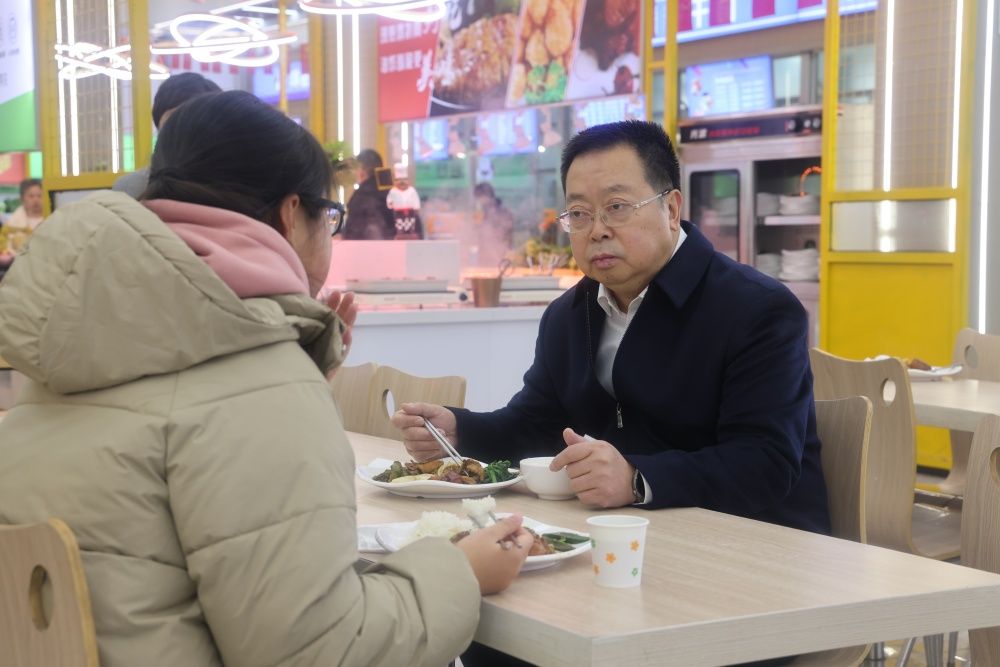“食堂的飯菜還可口嗎?”“價(jià)格貴嗎?”“學(xué)校就是你們的家,對食堂有需要改進(jìn)的地方可以提出來。”12月31日上午,校長劉宗明到學(xué)校食堂看望慰問食堂工作人員,檢查食品安全工作并和同學(xué)們共進(jìn)午餐。學(xué)校辦公室、宣傳部、學(xué)生工作處、安全管理處和后勤管理處相關(guān)負(fù)責(zé)人陪同。