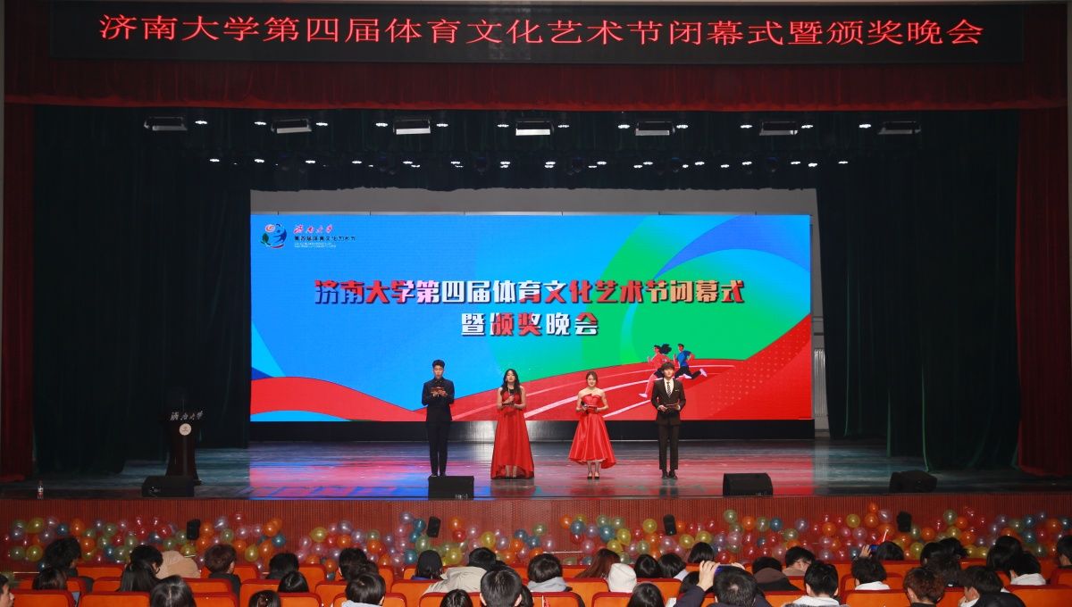 12月28日,由濟南大學體育運動委員會主辦,濟南大學團委、體育學院承辦的濟南大學第四屆體育文化藝術節閉幕式暨頒獎晚會在學校大禮堂舉行。學校黨委常委、副校長、濟南大學體育運動委員會主任李強,黨委宣傳部、醫院、團委、體育學院相關負責同志,各學院黨委副書記、團委書記、學生代表參加了晚會。閉幕式由體育學院院長亓圣華主持。