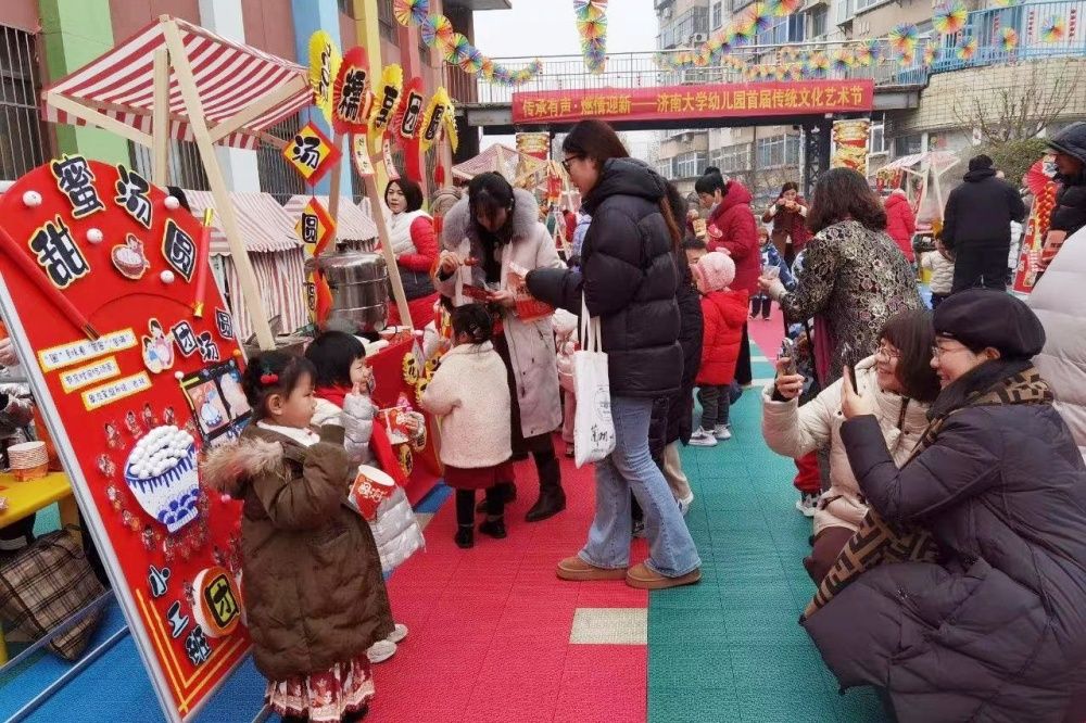 儀式結(jié)束后,與會(huì)領(lǐng)導(dǎo)對(duì)濟(jì)南大學(xué)幼兒園的傳統(tǒng)文化作品成果展及迎新年游園會(huì)進(jìn)行了參觀。